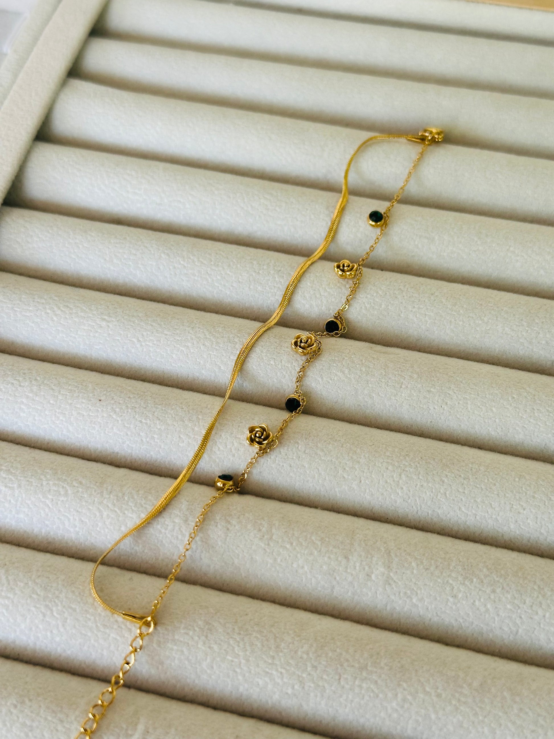 New anti tarnish rosy green stone double layer bracelet